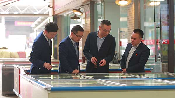 工作人員現(xiàn)場(chǎng)了解火鍋食材供應(yīng)商情況。受訪(fǎng)者供圖