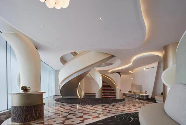 項(xiàng)目銷售大廳內(nèi)的雙螺旋樓梯;幽旯﹫D