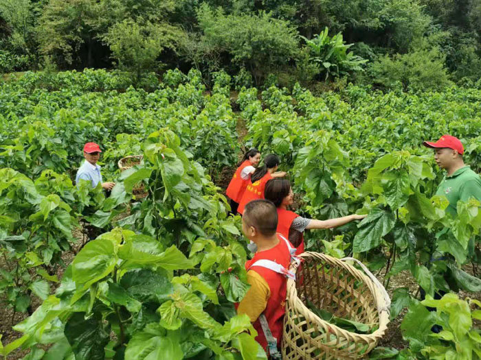 共青團(tuán)黔江區(qū)委派駐蓬勃社區(qū)駐村隊員陳濤得知脫貧戶余紹云正值養(yǎng)蠶忙碌時節(jié),勞動力較為短缺的情況,團(tuán)區(qū)委便組織了10余名青年志愿者去幫助其采摘桑葉,促進(jìn)產(chǎn)業(yè)發(fā)展。桑田里,大家齊心協(xié)力,志愿者們有的摘桑葉,有的背背簍,盡管天氣炎熱,但大家干勁十足。桑葉采摘完,大家又洗手消毒忙著給蠶寶寶投食,同時還向養(yǎng)蠶戶、駐村工作隊員請教養(yǎng)蠶技術(shù)和注意事項。