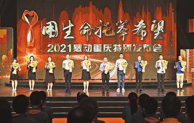 發(fā)布會上,王紅旭及“救命人鏈”被授予2021感動重慶特別獎。市領導吳存榮、熊雪出席發(fā)布會并頒獎。