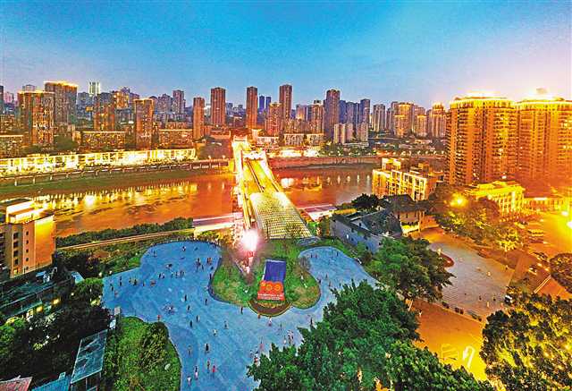 據(jù)了解,曾家?guī)r大橋南橋頭廣場是我市“兩江四岸”治理提升嘉陵江岸線貫通工程的一部分。廣場緊臨周公館,視野開闊,站在觀景臺上憑欄眺望,北濱路、嘉濱路及軌道2號線盡收眼底。該廣場的建成投用,為重慶主城又添一處拍照打卡的景點。