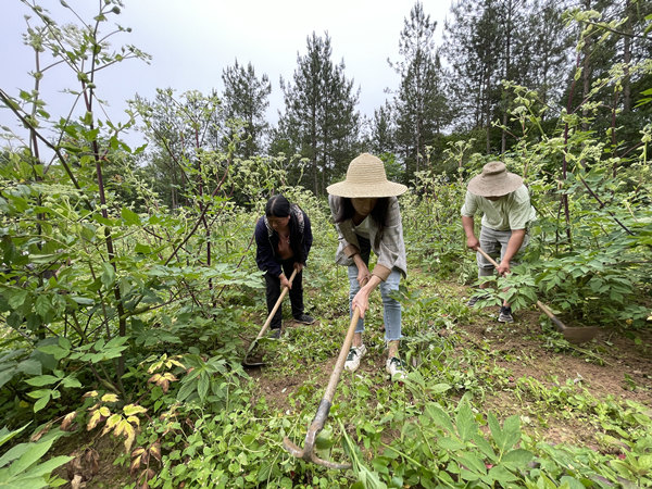 村民在獨(dú)活田鋤草。陳凌云攝