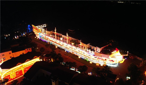 巨型海盜船燈光秀在南山加勒比海亮燈