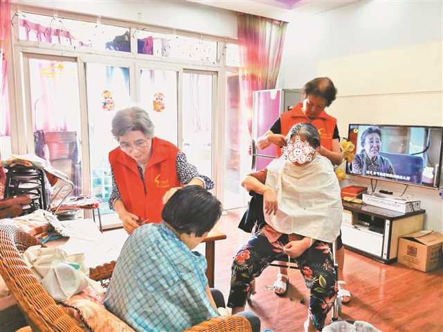 “我們今天先幫你們娘兒倆理個發(fā),再帶阿姨下去曬太陽!焙伍L玉對王琳說。何長玉今年72歲,是原長江電工廠的退休人員,當過黨委委員、廠工會委員。退休21年來,一直是社區(qū)志愿者!拔覀兛吹缴鐓^(qū)發(fā)布的‘藍色心愿’后,就決定來幫她們實現(xiàn)心愿!
