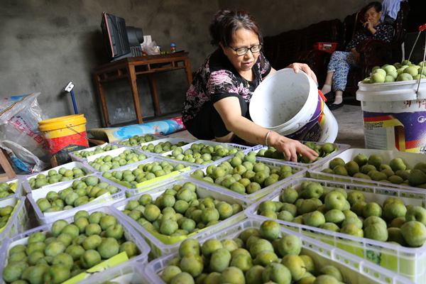 現(xiàn)在,鎮(zhèn)江村有近70戶外出戶回鄉(xiāng)將撂荒地開墾出來種上了脆李,該村已發(fā)展脆李800余畝,盛產(chǎn)300余畝,年產(chǎn)量150萬斤,價(jià)格5至10元不等,采摘期從6月下旬將一直持續(xù)到8月中旬。(劉政寧、謝模燕)