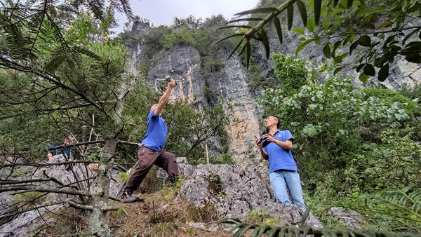 7月16日,巫山地區(qū)的此輪強(qiáng)降雨結(jié)束,天空放晴。龔強(qiáng)、蒲福春等三名隊(duì)員帶著無(wú)人機(jī),背著飲水和干糧,在老鄉(xiāng)的帶領(lǐng)下,再次整裝出發(fā),對(duì)危巖區(qū)域開(kāi)展進(jìn)一步的詳細(xì)調(diào)查。