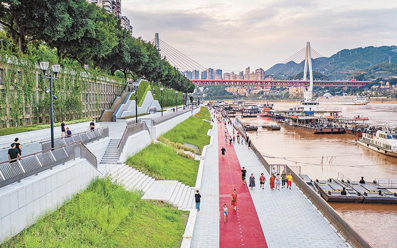 7月19日,渝中區(qū)東水門-儲(chǔ)奇門段濱江步道,市民正在休閑健身、欣賞江岸城市美景。該步道長(zhǎng)約1.4公里,近日完工并開放,屬于“兩江四岸”治理提升工程珊瑚公園片區(qū)的一部分。通過(guò)消落區(qū)沿線生態(tài)打造、環(huán)境綜合治理、配套設(shè)施更新等改造,濱江步道岸線煥然一新,成為中心城區(qū)“美麗山水”風(fēng)貌特色的重要景觀展示帶。