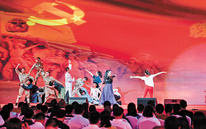 七月二十一日,重慶市學(xué)習(xí)貫徹習(xí)近平總書記在慶祝中國共產(chǎn)黨成立一百周年大會(huì)上的重要講話精神“六進(jìn)”文藝宣傳示范演出在九龍坡區(qū)巴國城廣場舉行。記者 齊嵐森 攝\視覺重慶