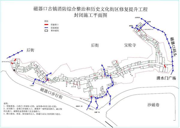 施工范圍為磁器口古鎮(zhèn)歷史文化街區(qū)保護(hù)范圍,包括金蓉門、幸福街(1-7號(hào))、磁正街(1-260號(hào))、磁橫街(1-83號(hào))、黃桷坪一巷(鐘家院十字路口-磁正街)。封閉施工期間,所涉居民和商家持通行證出入,游客按指示牌擇道通行。(劉政寧、黃亞輝)