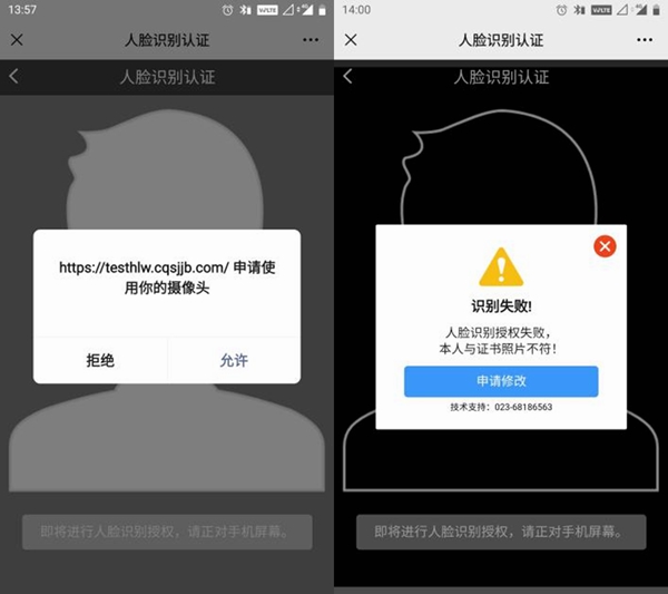 通過人臉識別后才能下載證書。重慶市住房城鄉(xiāng)建委供圖