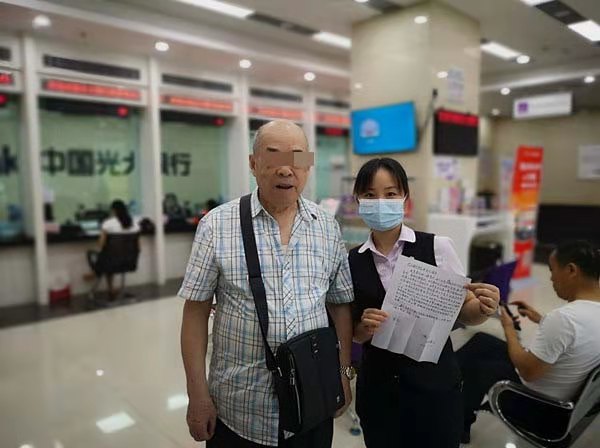 老人向工作人員遞交感謝信。光大銀行重慶分行供圖