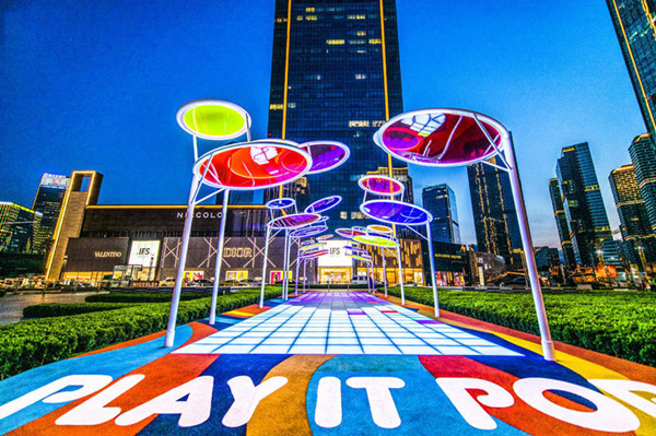 本次活動匯聚了江北嘴中央商務區(qū)轄區(qū)內(nèi)多家商業(yè)體、銀行,共同聯(lián)動實現(xiàn)的跨場景鏈接,在帶動區(qū)域消費的同時,也奠定了江北嘴夜生活風向標的地位,將江北嘴推向潮流浪潮巔峰。在開幕式現(xiàn)場,主會場重慶IFS國金中心舉辦了“Play it POP爆玩世代”暑期主題活動啟幕儀式,分會場財信廣場將同步開展7月不夜江北嘴生活節(jié)促銷活動等娛樂消費趣玩暑期活動。