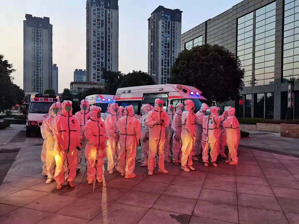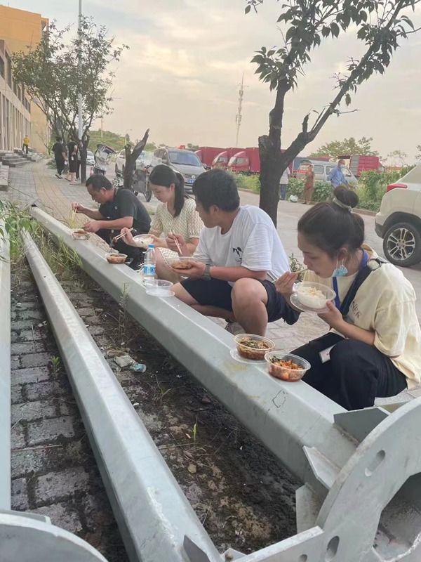 醫(yī)護(hù)人員休息間隙抓緊時(shí)間吃飯。江津區(qū)委宣傳部供圖