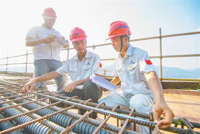 8月2日,萬州高速環(huán)線新田港互通,工人在烈日下,為接下來的現(xiàn)澆箱梁做準(zhǔn)備。特約攝影 冉孟軍/視覺重慶