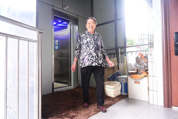 有了電梯后,徐婆婆經(jīng)常下樓買菜了 。陳婷攝