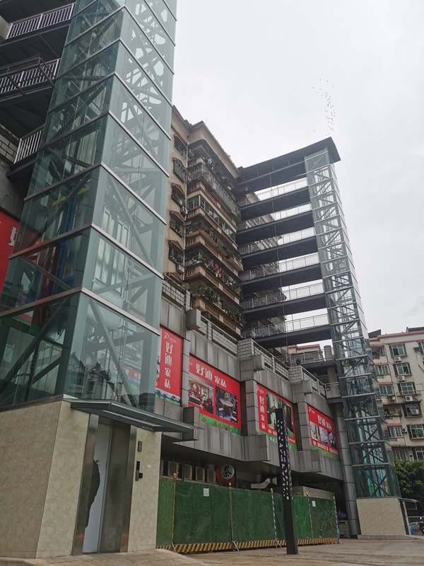 如今,在城南社區(qū)銅鑼干部集資樓前,兩臺(tái)“因樓制宜”、從樓里延伸出來的方鋼結(jié)構(gòu)外置電梯十分醒目,樓上的每一層樓道與電梯處設(shè)置了連接過道,住戶可以通過這個(gè)過道乘坐電梯,過道兩旁還設(shè)置了安全防護(hù)欄。