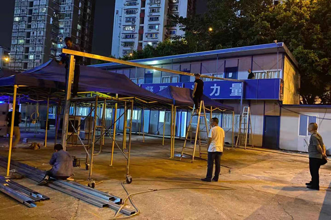 重慶醫(yī)藥高專附一院后勤保障科黨支部連夜搭建帳篷。院方供圖