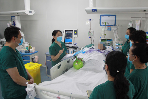 在加強(qiáng)醫(yī)護(hù)人員的專業(yè)知識(shí)的基礎(chǔ)上,陳璽帶領(lǐng)科室人員開展新技術(shù)、新業(yè)務(wù)。包括纖支鏡肺泡灌洗、俯臥位通氣、經(jīng)皮胃造瘺和血漿置換等,其中多項(xiàng)技術(shù)在區(qū)級(jí)醫(yī)院中處于領(lǐng)先水平,為守好患者生命安全的最后一道關(guān)口奠定了堅(jiān)實(shí)基礎(chǔ)。