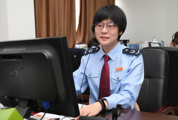 萬州區(qū)稅務(wù)局12366納服熱線坐席人員辦理“即時辦”事項。程全攝