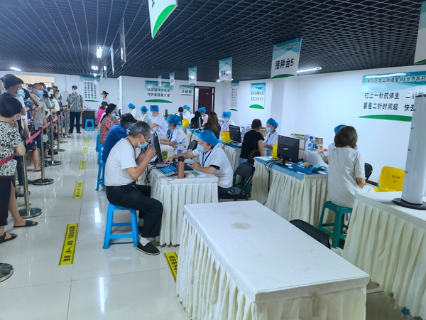 龍山街道租賃了位于金易E世界的1000余平米有室內(nèi)空調(diào)的臨街商鋪新增為疫苗接種點,并為有需求的群眾備上糕點和防暑藥品等物資。