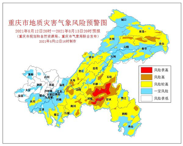 人民網(wǎng)重慶8月12日電 8月12日16時(shí),重慶市規(guī)劃和自然資源局、重慶市氣象局聯(lián)合發(fā)布全市地質(zhì)災(zāi)害氣象風(fēng)險(xiǎn)預(yù)警。