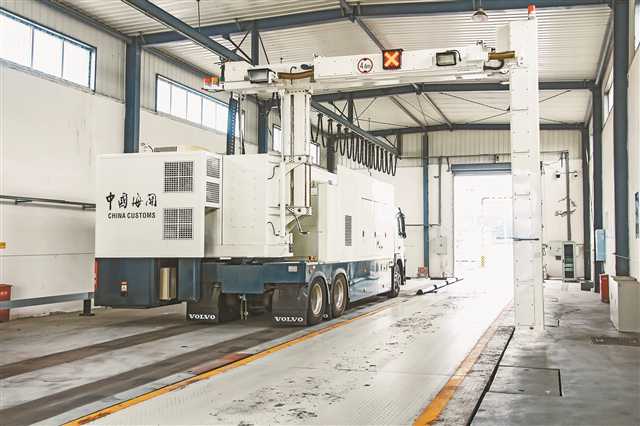 在重慶鐵路口岸,H986的造型就像一個“小房子”。每輛貨車出關(guān)前,都要駛?cè)搿靶》孔印蓖獾木薮髠鬏攷稀楸苊廨椛,司機(jī)會下車,貨車則通過傳輸帶自動經(jīng)過“小房子”,也就接受了一次H986的不開箱查驗(yàn)。