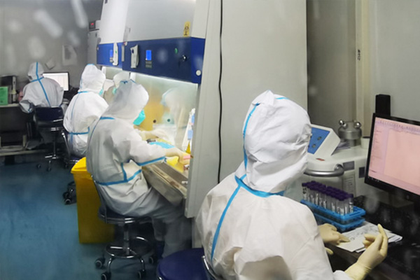 為確保核酸檢測的質(zhì)量和效率,檢驗科團隊堅持任務(wù)同擔當、困難同克服、安全同監(jiān)督、質(zhì)量同把關(guān),團結(jié)一心攻堅克難。在支部黨員的帶頭下,科室人員用2天時間完成培訓,6天時間建成全市第一個火眼實驗室,做到24小時流水作業(yè)不間斷,極大地提高了工作質(zhì)量與速度,充分發(fā)揮了科室在應(yīng)對突發(fā)公共衛(wèi)生事件中的作用,為全區(qū)疫情防控檢測貢獻出了應(yīng)盡的力量。