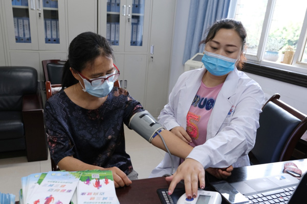 測(cè)量血壓。江津區(qū)疾控中心供圖