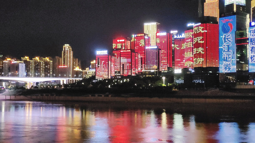 人民網(wǎng)重慶8月19日電 (陳琦)8月19日,是第四個“中國醫(yī)師節(jié)”。昨晚,重慶兩江四岸多個地標建筑點亮燈光,一幕幕流光溢彩將山城的夜色裝扮得分外美麗,以此向醫(yī)務(wù)工作者致敬,送上節(jié)日祝福。