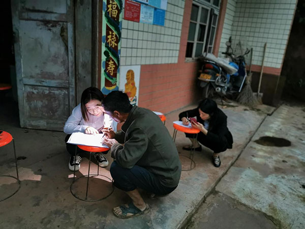 重慶潼南民生村鎮(zhèn)銀行員工為貧困戶辦理扶貧貸款。民生銀行重慶分行供圖