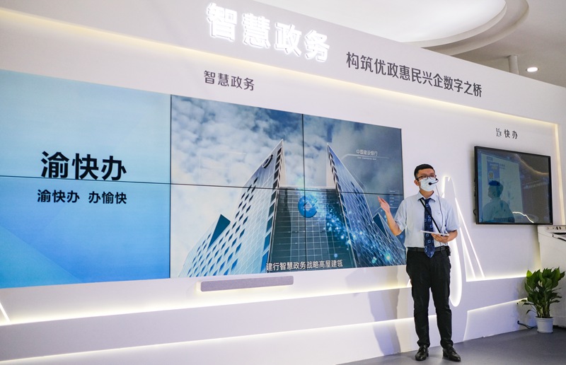 中國建設(shè)銀行數(shù)字展館智慧政務(wù)專區(qū)。李昊東攝