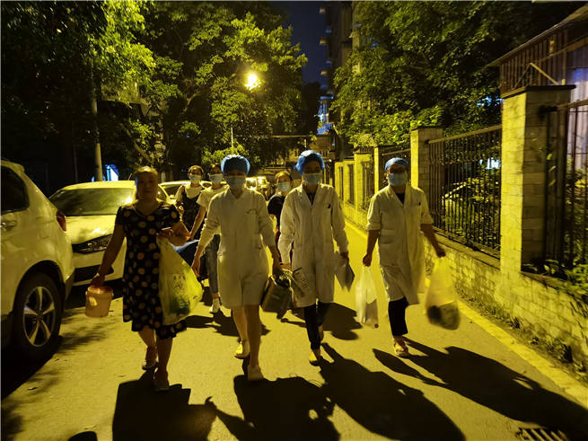 深夜里,接種小分隊(duì)依然奔走在社區(qū)樓宇,為群眾提供接種服務(wù)。歐榮蘭 攝