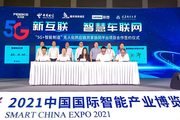“5G+智能制造”無人化供應(yīng)鏈共享協(xié)同平臺正式簽約。中國電信重慶公司供圖