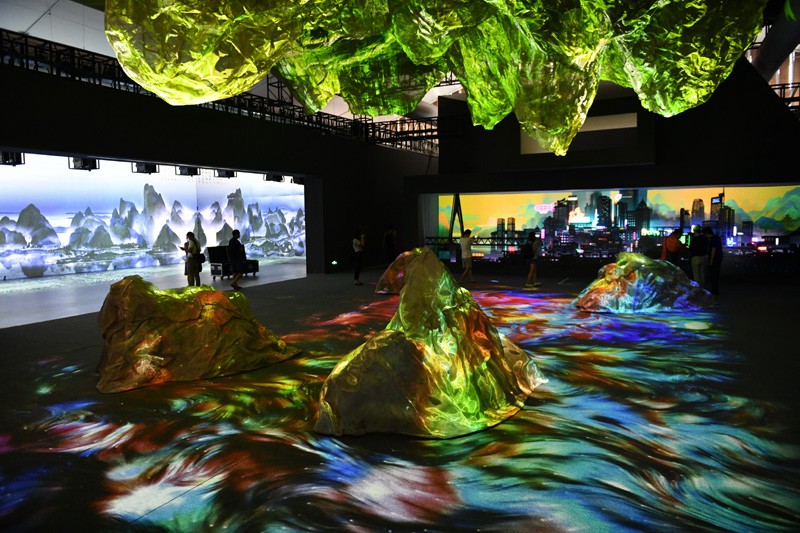 位于禮嘉智慧公園的《畫游千里江山——故宮沉浸藝術(shù)展》展覽現(xiàn)場。鄒樂攝