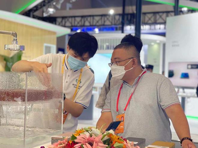 工作人員為嘉賓講解智能產(chǎn)品。親禾集團(tuán)供圖