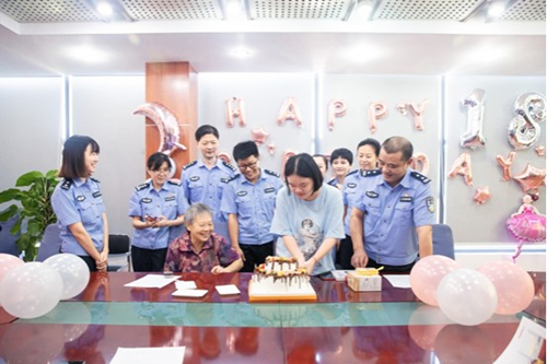 民警為黃蓉過生日。兩江新區(qū)公安分局供圖
