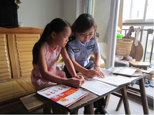 民警輔導(dǎo)黃蓉做作業(yè)。兩江新區(qū)公安分局供圖