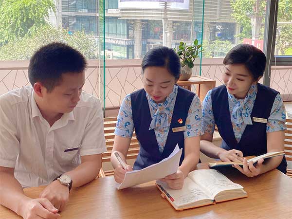 服務無止境,學習不止步。作為廳堂的服務帶頭人,曹珍珍在團隊中營造了濃厚的學習氛圍,每天晨會,她都會抽檢團隊人員進行財經知識分享;在每周特定學習日、夕會上帶領團隊共同學習業(yè)務知識、市場分析及財富管理相關書籍。