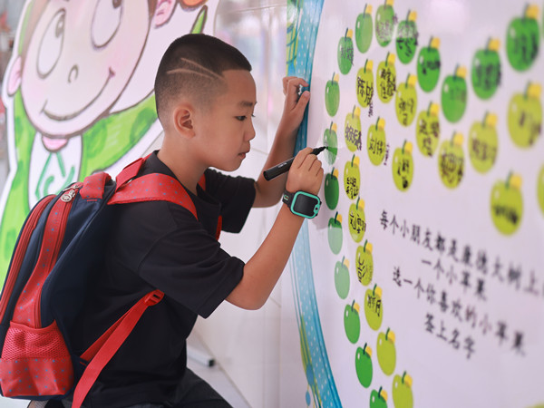 在康德校區(qū),學(xué)校溫馨的環(huán)境布置和無處不在的“打卡”點,讓新生不斷發(fā)出開心的笑聲。尤其是班級簽名墻的設(shè)置,讓新生迅速感受到集體的溫暖。四海小學(xué)校區(qū)則為新生準(zhǔn)備了儀式感滿滿的“志向拍照”環(huán)節(jié),新生在相片里,也在心里留下了單純的向往和美好的愿望。