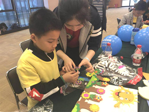 當天,該支行15組客戶家庭組成“小小自愿者家庭”,與重慶市某特教學校的15個自閉癥兒童展開“一對一”互動,一起裝點布置、協(xié)作互助,完成了愛心手袋的縫制與創(chuàng)意貼圖的繪制,讓孩子們在互動中交流分享。