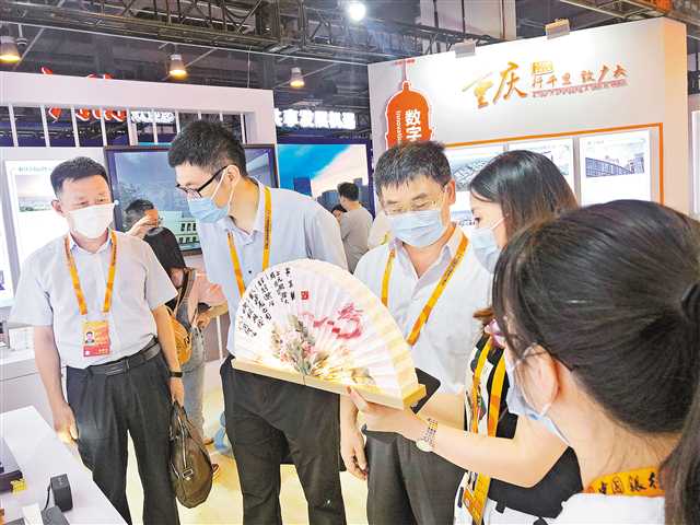 9月3日,2021服貿(mào)會(huì)現(xiàn)場,重慶展臺(tái)吸引了不少參觀者。本次服貿(mào)會(huì)重慶展廳集中展示了全市投資環(huán)境、國際物流、數(shù)字貿(mào)易、文化旅游、工程技術(shù)、生物醫(yī)藥等領(lǐng)域新面貌新成就。(市商務(wù)委供圖)