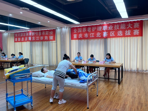 江北區(qū)選拔賽日常護(hù)理實(shí)操考核現(xiàn)場。重慶市民政局供圖