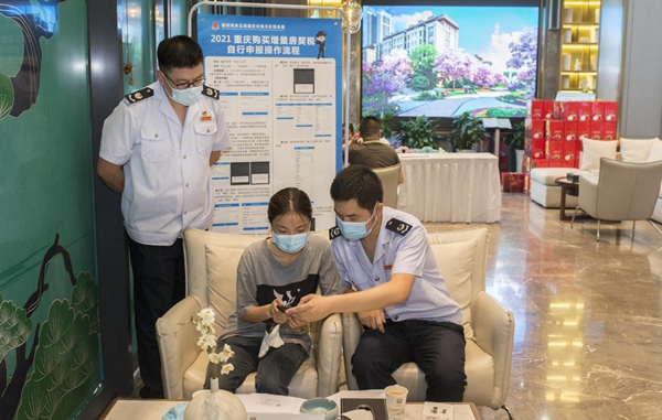 9月1日,契稅法實施當日,重慶市南川區(qū)稅務(wù)局分別前往區(qū)內(nèi)各大樓盤,向購房者宣傳輔導(dǎo)契稅自行申報。焦相寅攝