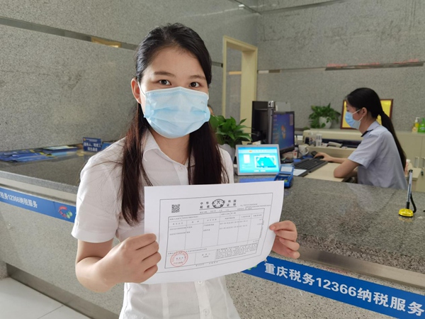 9月1日,重慶兩路寸灘保稅港區(qū)稅務(wù)局辦稅服務(wù)廳開出納稅人自行申報繳納后的契稅完稅證明。張哲攝