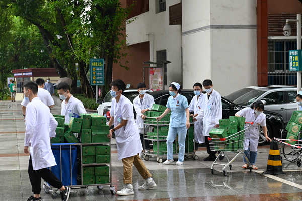 上午8點(diǎn),清水村的6000多斤脆香獼猴桃來(lái)到了重慶市第十三人民醫(yī)院。