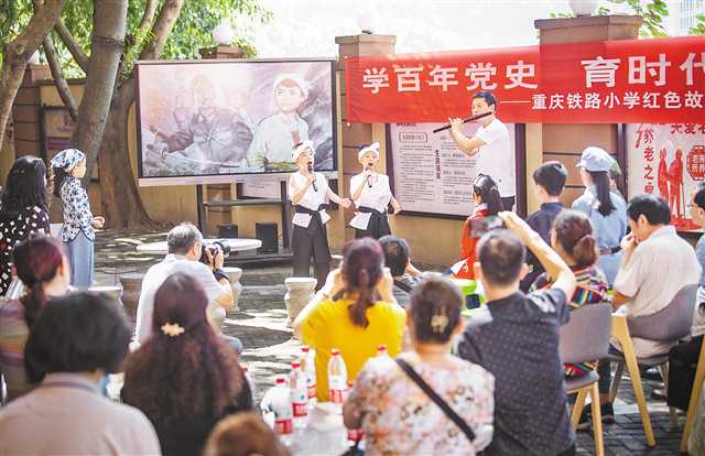 9月10日,九龍坡區(qū)黃桷坪街道郵電支路社區(qū),重慶鐵路小學(xué)的老師和孩子們正一起演繹小蘿卜頭、江姐等經(jīng)典紅色故事。記者 鄭宇 通訊員 周雙雙 攝/視覺(jué)重慶