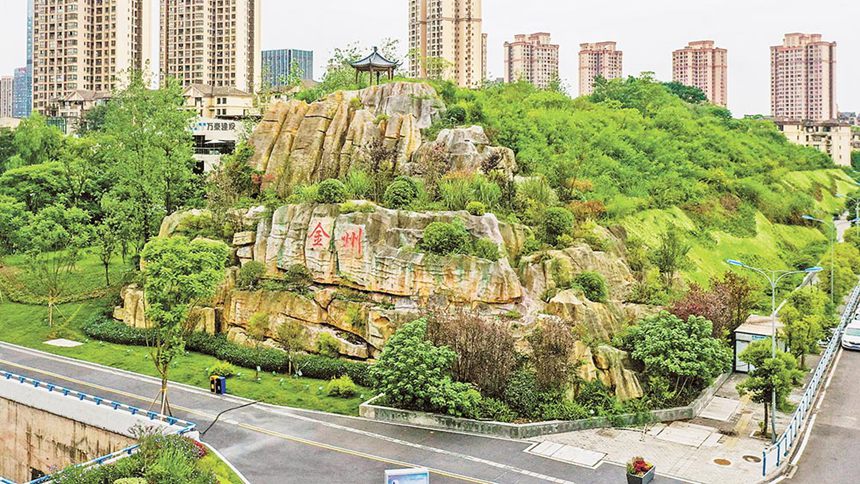 九月七日,兩江新區(qū)金州大道旁的立體景觀墻。記者 張錦輝 攝\視覺(jué)重慶