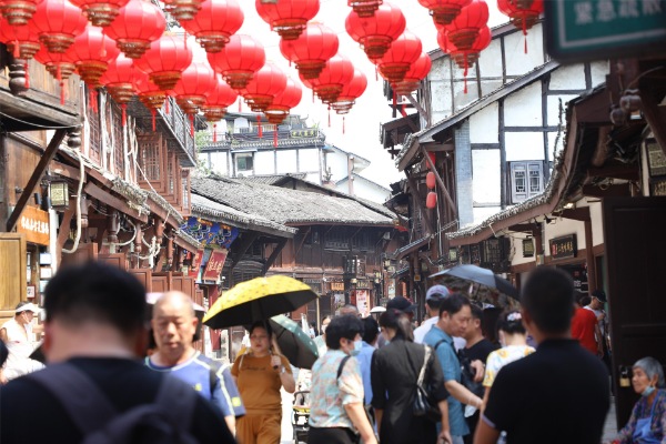 磁器口古鎮(zhèn)重新開街,游客眾多。江曉蕓攝