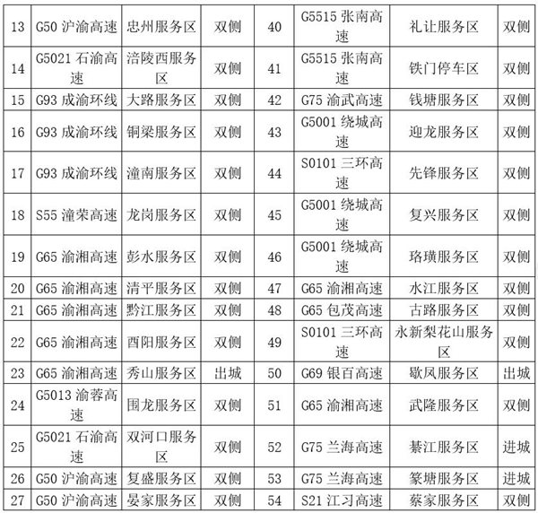 服務(wù)區(qū)充電站分布。重慶高速集團供圖