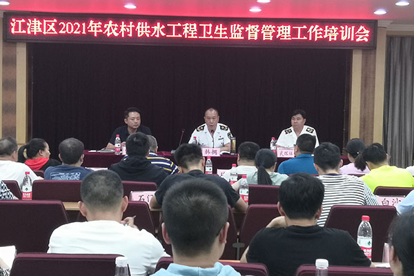 人民網(wǎng)重慶9月16日電 9月14日,江津區(qū)2021年農(nóng)村供水工程衛(wèi)生監(jiān)督管理工作培訓(xùn)會在區(qū)衛(wèi)生健康綜合行政執(zhí)法支隊八樓會議室舉行,各鎮(zhèn)街社會事務(wù)辦(農(nóng)業(yè)服務(wù)中心或水務(wù)站)負(fù)責(zé)人、衛(wèi)生健康辦負(fù)責(zé)人、衛(wèi)生院公共衛(wèi)生科科長、支隊衛(wèi)生監(jiān)督員共120余人參加。